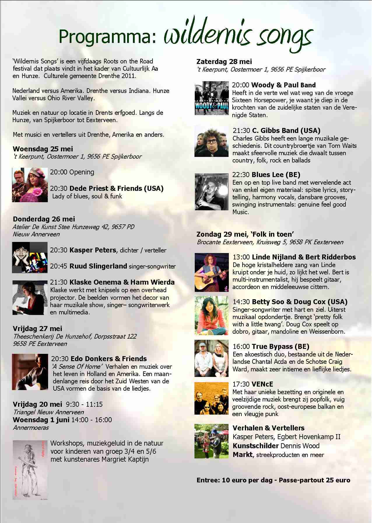 Zie voor verdere informatie de festival site http://www.wildernissongs.nl