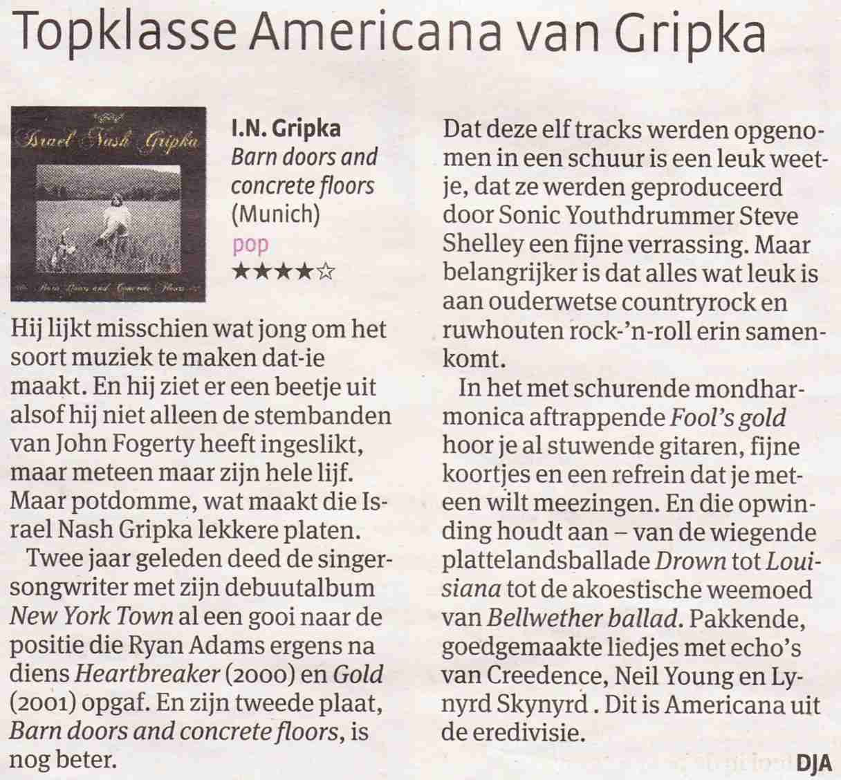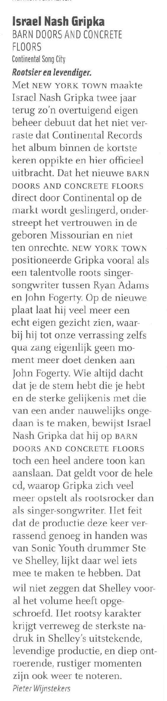 Roots on the Road en Written in Music plaatsen hun links bij de recensie van Israel Nash Gripka. Vrijdag 29 april willen we een vol huis met Nash en de Fieros! Wellicht dat we hem voor de tweede en laatste keer in 't Keerpunt zien en horen. Zo’n groot talent staat binnenkort in de grote zaal van Paradiso. Reserveer nu! Lees over 'Barn Doors and Concrete Floors'