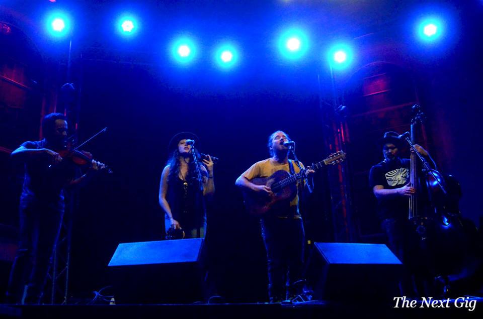 Inmiddels toert de man met band, maar de naam op de poster was nog niet veranderd, Een + band stond er op het bord voor de Borger cultuurtempel waarbinnen de vier Amerikanen genoten van overheerlijke pompoenensoep, voor de belangstellenden met wat gember en canyennepeper voor smaak en pit, voor een concert. Halverwege het concert speelde Stelling een aantal nummers solo, waarna hij de band met een ‘Come On Kids’ terugriep. Christopher Paul Stelling & Kids dus op het podium voor een concert als Borger Pompoenensoep, heerlijk pittig en gelaagd. De kinderen van Stelling waren de Australische violist Kieran Ledwidge, de bedaarde onopvallende maar fantastisch bassende Matt Murphy en uit New York Julia Marie Christgau, die niet alleen naast Stelling schittert als zangeres maar die als actrice ook indruk maakte in films als ‘In The Hollow’, ‘Fish Hook and Eye’ en ‘To Sing Among the Branches’. Een lijst met films waar het laatste jaar niks aan is toegevoegd, want al acht maanden is Stelling onderweg met zijn Kids voor eerst een toernee door Europa, dan de Verenigde Staten en terug naar Europa. Een toer die eindigt voor de kids met nog twee Nederlandse optredens, waarna Stelling met zijn gitaar, oud en door het vele toeren gedeukt, solo nog het zuiden van ons continent zal aandoen. De formatie ging van start met het ingetogen ‘Oh River’. Ingetogenheid is vooral een beteugeling van de oerkrachten die in deze band schuilen. Langzaam werd die kracht verder op het publiek los gelaten in sterke nummers als ‘The Cost of Doing Business’ en het stevige ‘Brick X Brick’. Tussen door een fraaie uitvoering van ‘Wayfaring Stranger’, de folkklassieker dat werd gebracht als duet met Christgau en het prachtige ‘Oblivion’ waarbij Stelling in zijn introductie een lans brak voor vluchtelingen. Een mooie Townes van Sant cover prachtig gebracht akoestisch voor het toneel om met ‘Ocean’ en ‘Castles’ solo ook even ongeremd zijn ziel en zaligheid op het toneel te leggen en zijn fraaie tokkelende gitaarspel te accentueren. Een erg sterke songwriter die zijn liedjes brengt met passie en energie. Dermate intens dat hij de pauze vergat en door Christgau van het toneel geplukt moest worden. De band heeft twee prachtige zangers, die beide het subtiele en het rauwere werk beheersen, waarbij prettig is dat beide wat afstand houden van de microfoon. Af en toe een sterke introductie van een liedjes, maar dat is een onderdeel waar hij nog wat meer rust in mag leggen, zodat het beter overkomt. Na de pauze eerst weer een liedje solo voor met ‘Revenge’ een schitterend rijtje liedjes van zijn laatste album ‘ Itinerant Arias ‘werd ingezet, waarvan ‘Destitute’ en het even schitterende ‘Bad Guys’ tot de hoogtepunten van de avond hoorden. Voor de afsluiter had Stelling ‘Horse’ bewaard. De staande ovatie bracht hem er toe de Kids naar bed te sturen, maar zelf nog solo een nummer te spelen en voor de tweede keer met zijn spel het publiek op de voeten kreeg voor een staande ovaie. Dat zegt genoeg over deze avond vol met prachtige folk, bluegrass en Americana.