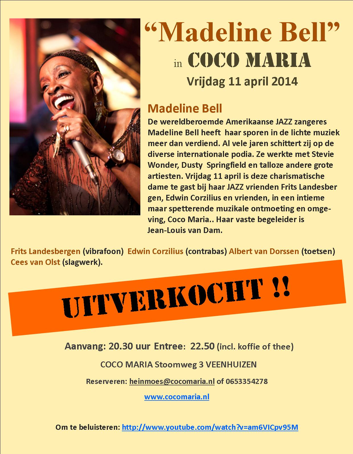 Concert Madeline Bell in Coco Maria Veenhuizen is helaas uitverkocht!