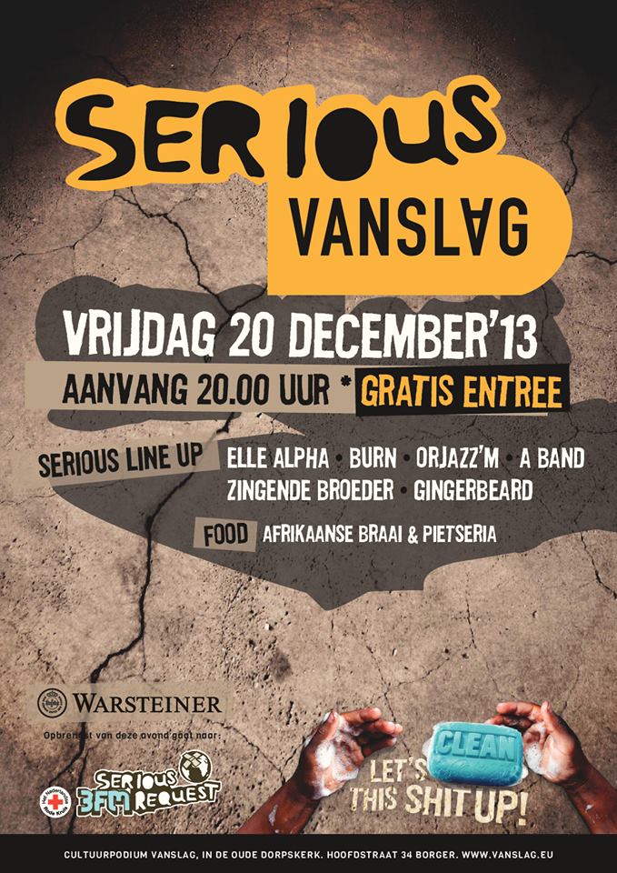 Het was lekker druk bij Serious VANSLAG ten bate van Serious Request. Met optredens van De Zingende Broeder, Gingerband, The A Band, Oriazz’m en Elle Alpha, alter ego van singer-songwriter Ella Stoffers en haar band uit Groningen. Leuke groep die ons vorig jaar opviel op Eurosonic. Mooi initiatief dit Serious VANSLAG en er gaat een aardige bate naar het glazen huis in Leeuwarden...