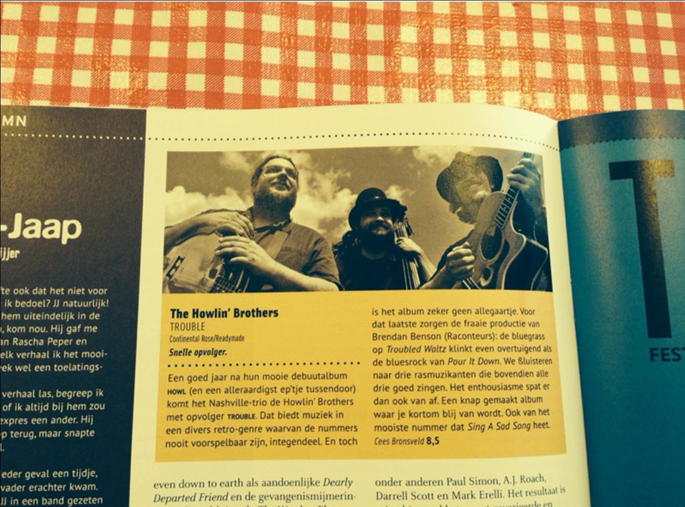 Drie jongemannen (geen broers) die samen in een huis in Nashville wonen waar ze na hun muziekstudies in Ithaca, New York heen trokken om hun geluk te beproeven. Na drie in eigen beheer uitgebrachte album lijkt dat geluk zich nu inderdaad te gaan openbaren. Hun vierde album 'Trouble' is uitgebracht op het Readymade Records-label van Brendon Benson (The Raconteurs), die het album ook produceerde. En je weet, alles wat Benson tegenwoordig aanraakt, verandert in goud. Nu was daar in dit geval misschien ook niet zo veel voor nodig want Howl staat vol heerlijke Americana. In dit geval betekent dat bluegrass-achtige muziek met uitstapjes naar jazz, old-time country en blues. En allen, in diverse tempi, swingend als de neten