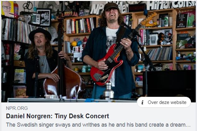 Daniel Norgren trad 3 januari op bij Tiny Desk Concert en is door Daniel op facebook geplaatst. Maar beter nog, hij treedt 2 februari op in de kleine zaal Oosterpoort!!