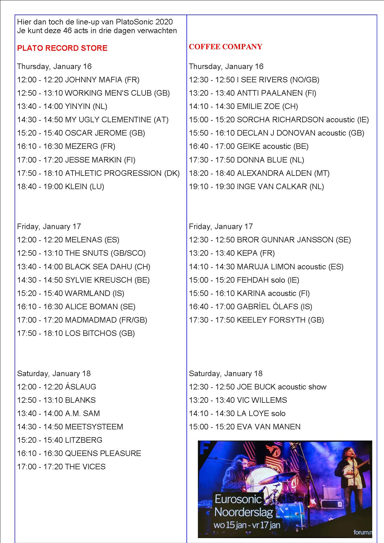 PLATO EN COFFEE COMPAGNY  -  16, 17 en 18 januari 2020