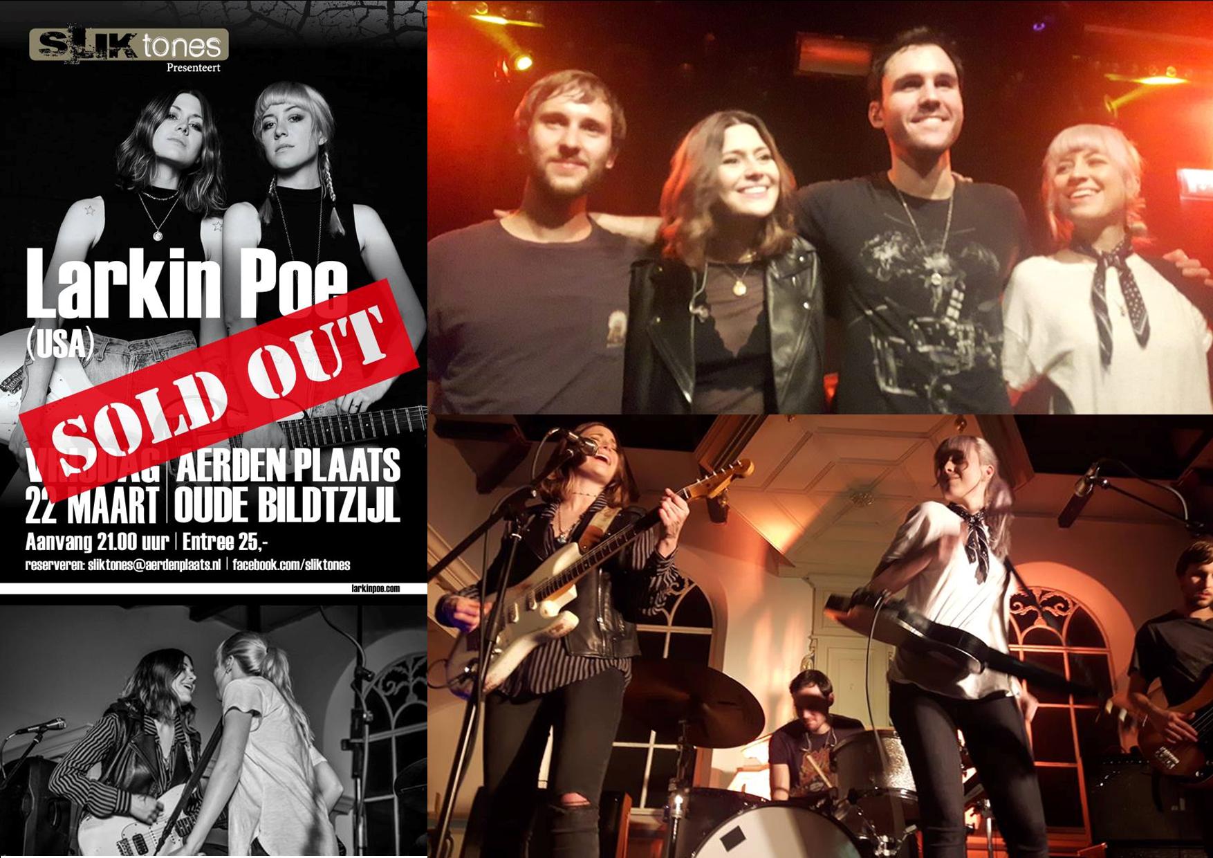 Blij weerzien met Rebecca en Megan Lovell aka Larkin Poe (US). (2 april 2015 Roots on the Road) 22 Maart beleefd in de Aerden Plaets in Oudebildtzijl en 23 maart met een overtreffende trap in Bitterzoet Amsterdam. Jonge energieke Swampy Blues(rock) met de mooie rauwe stem van Rebecca en dat vette Fender op Fender gitaargeluid. Larkin Poe is een verademing in het huidige americanalandschap.