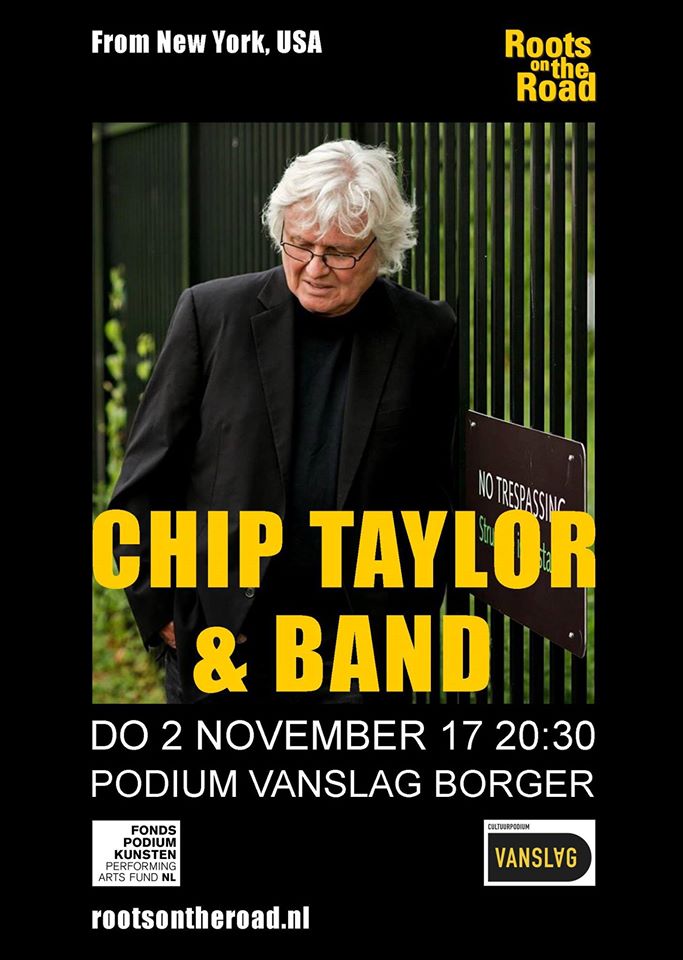 Yorker Chip Taylor, de legendarische singer- songwriter komt donderdag 2 november weer naar Roots on the Road in VanSlag. De reservering staat open. Het loopt storm!
