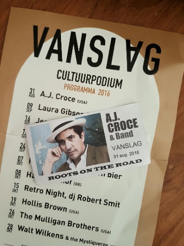 Op 31 augustus deed A.J. Croce Cultuurpodium VanSlag in Borger aan. De zaal was vol en de mensen genoten zichtbaar. A.J. Croce is sing- & songwriter en zoon van Jim Croce die tevens sing- & songwriter is en vooral populair was in de zestiger jaren in de VS. Onze fotografe Trees Nanninga maakte een sfeerimpressie middels foto's.