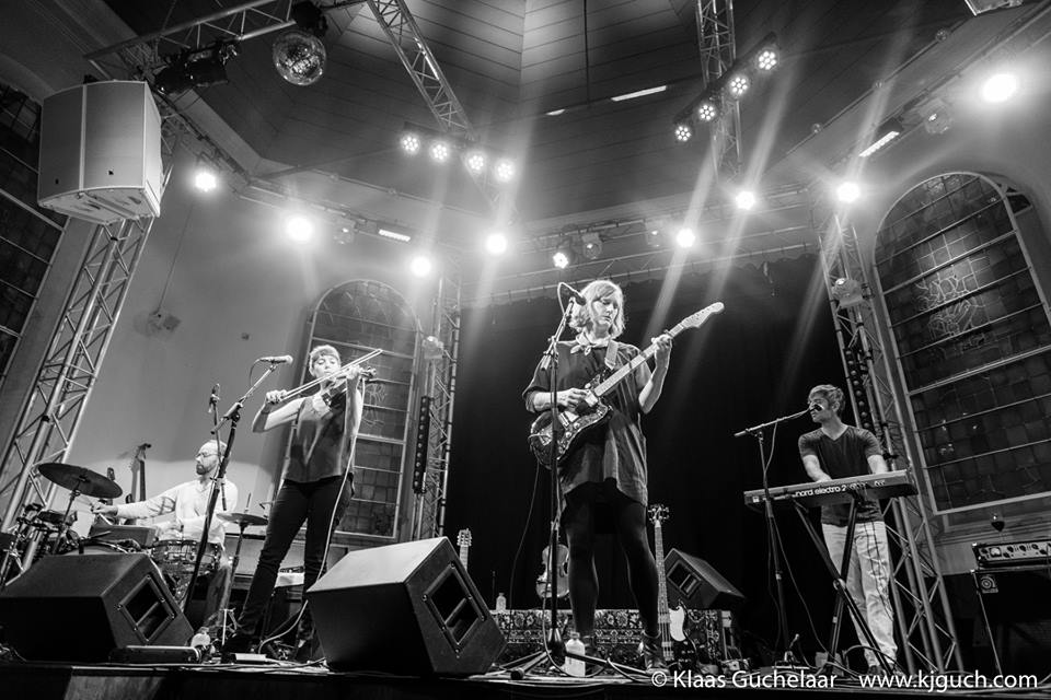 BORGER – Een boeren zakdoek om haar nek geknoopt. Laura Gibson is niet een dame die het van show en glitter moet hebben, maar een artiest die vooral haar liedjes laat spreken en op het podium van VanSlag / Roots on the Road in Borger ook eigenlijk niet meer nodig heeft, hoewel iets meer bravoure kan ze nog best gebruiken. Op het podium naast Gibson drie andere prachtige multi-instrumentalisten. Gezien de vele wisselingen, veranderingen van positie en in elkaar draaiende snoeren moet het wel een ingespeelde band zijn en dat blijkt ook.
