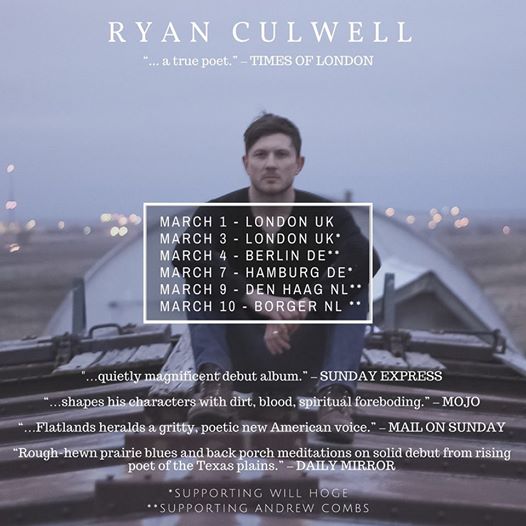 Singer- songwriter Ryan Culwell groeide op in de Texas Panhandle, een winderige plek met olievelden en open vlaktes; Een vlak land, uitgestrekt tot aan de horizon. In dat desolate gebied begon hij met het schrijven van zijn eigen liederen, op zoek naar de geest en de schaarste van zijn thuis. Nadat Ryan Culwell in 2010 naar Nashville verhuisde ontstond bij hem de kracht en voelde hij de vrijheid om over zijn herkomst en thuisland te gaan schrijven. Songs, waarin het gaat over lange werkdagen, zandstormen en koud weer. Het is er overleven op eigen kracht. In Nashville, zijn nieuwe thuisland, maakte hij met producer Neilson Hubbard zijn CD ‘Flatlands’ dat klinkt als een Cormac McCarthy film waarbij de tracklist is verdeeld tussen roadhouse-worthy roots rockers, veranda county liedjes en beklijvende ballads over leven en eenzaamheid. Akoestische Americana en dusky volksmuziek.