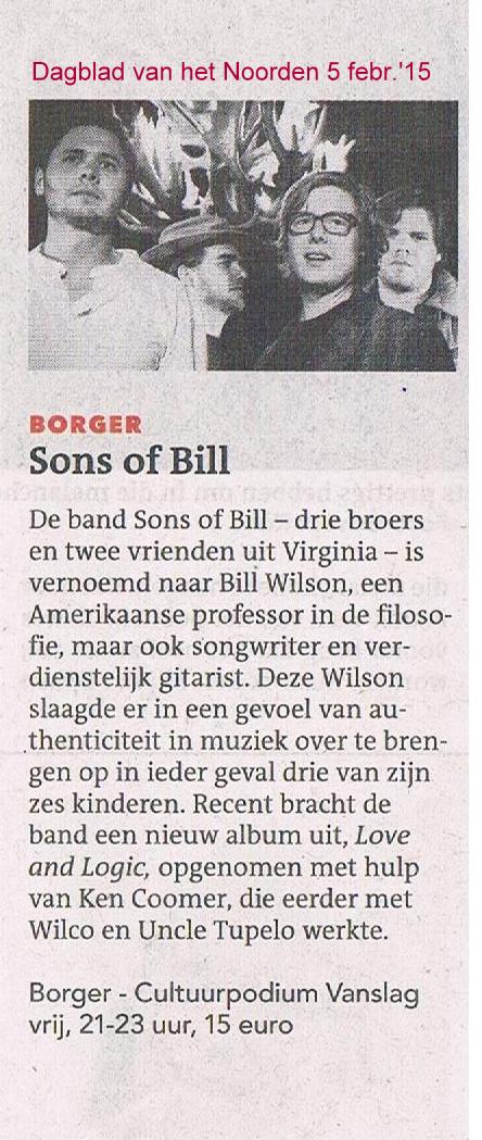 RECENSIE (2 febr.'15) De krenten uit de pop - SONS OF BILL - Love And Logic