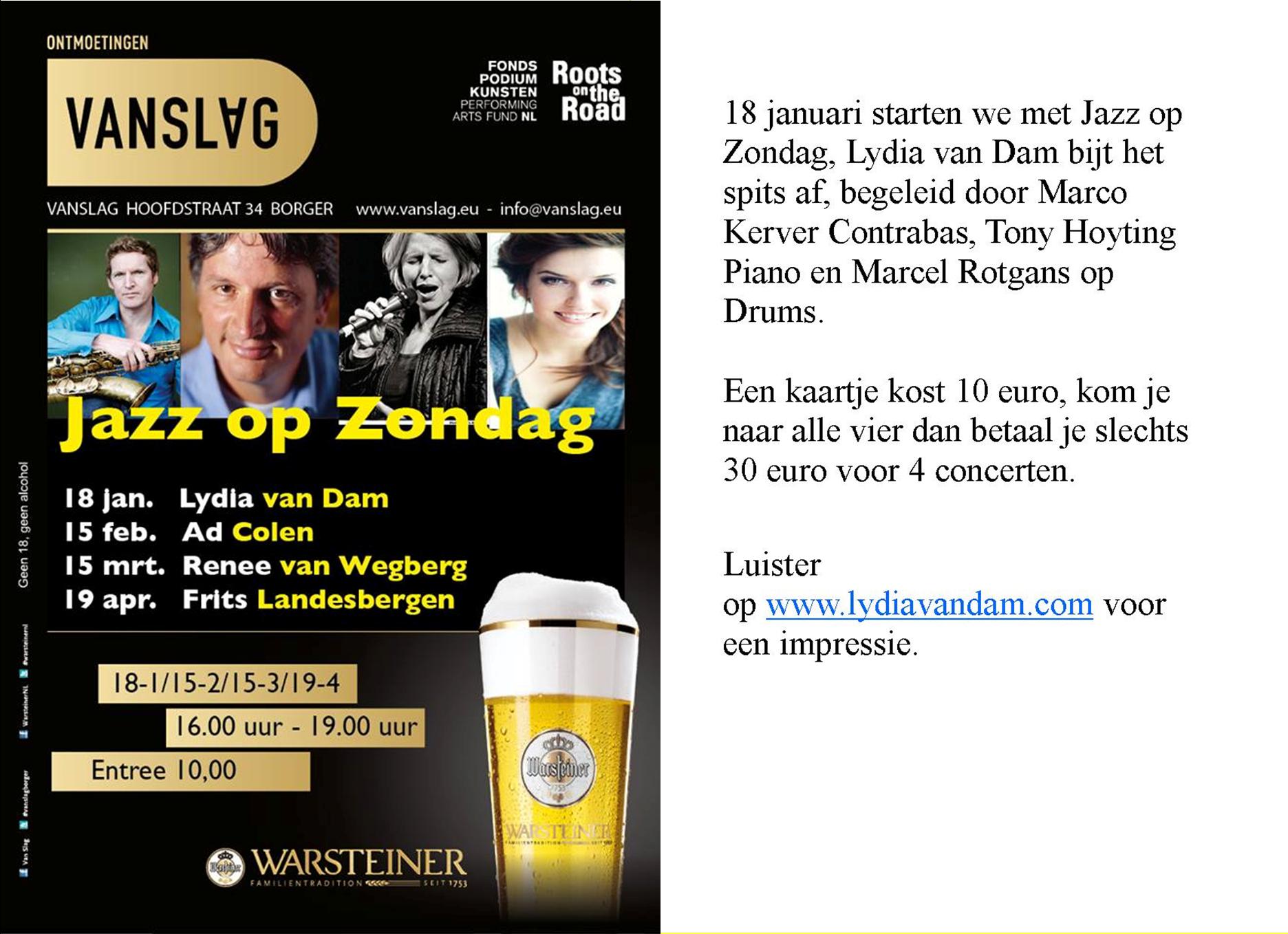 Voor 2015 staan er weer veel mooie concerten gepland. We beginnen met: